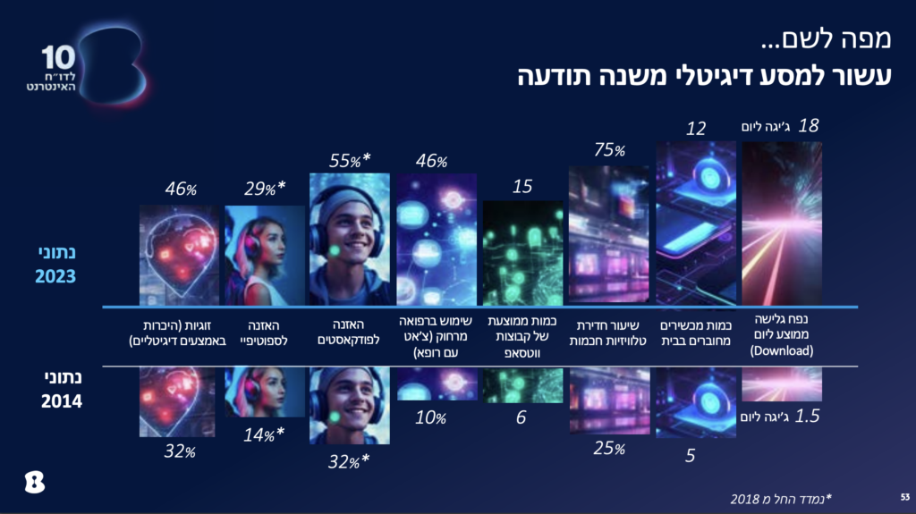 כמידי שנה, חברת בזק מפרסמת את דו״ח האינטרנט השנתי, מסמך שמרכז בתוכו המון נתונים שמשקפים את דפוסי הצריכה של הציבור הישראלי. ריכזתי מהדו״ח כמה נתונים שעניינו אותי במיוחד