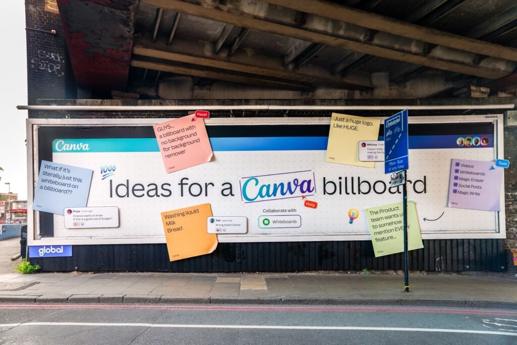 אני כל כך אוהב לראות קמפיינים של מוצרים שהם 100% דיגיטליים דווקא במדיום הכי לא דיגיטלי שיש – כמו שלטי חוצות, והפעם מדובר ב-canva, כלי שאני אישית משתמש בו כל יום (כל היום). דוגמה מצוינת ליישום יצירתי של מאפייני המוצר במרחב הפיזי. מושלם! אתן לתמונות לדבר בעד עצמן…